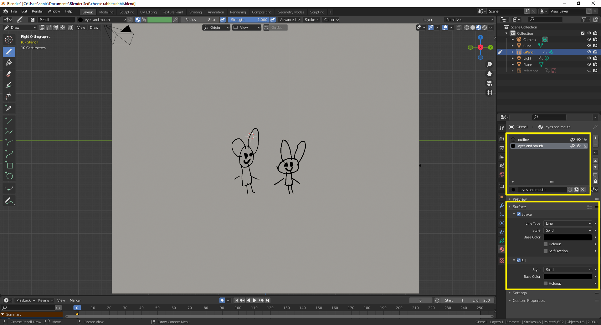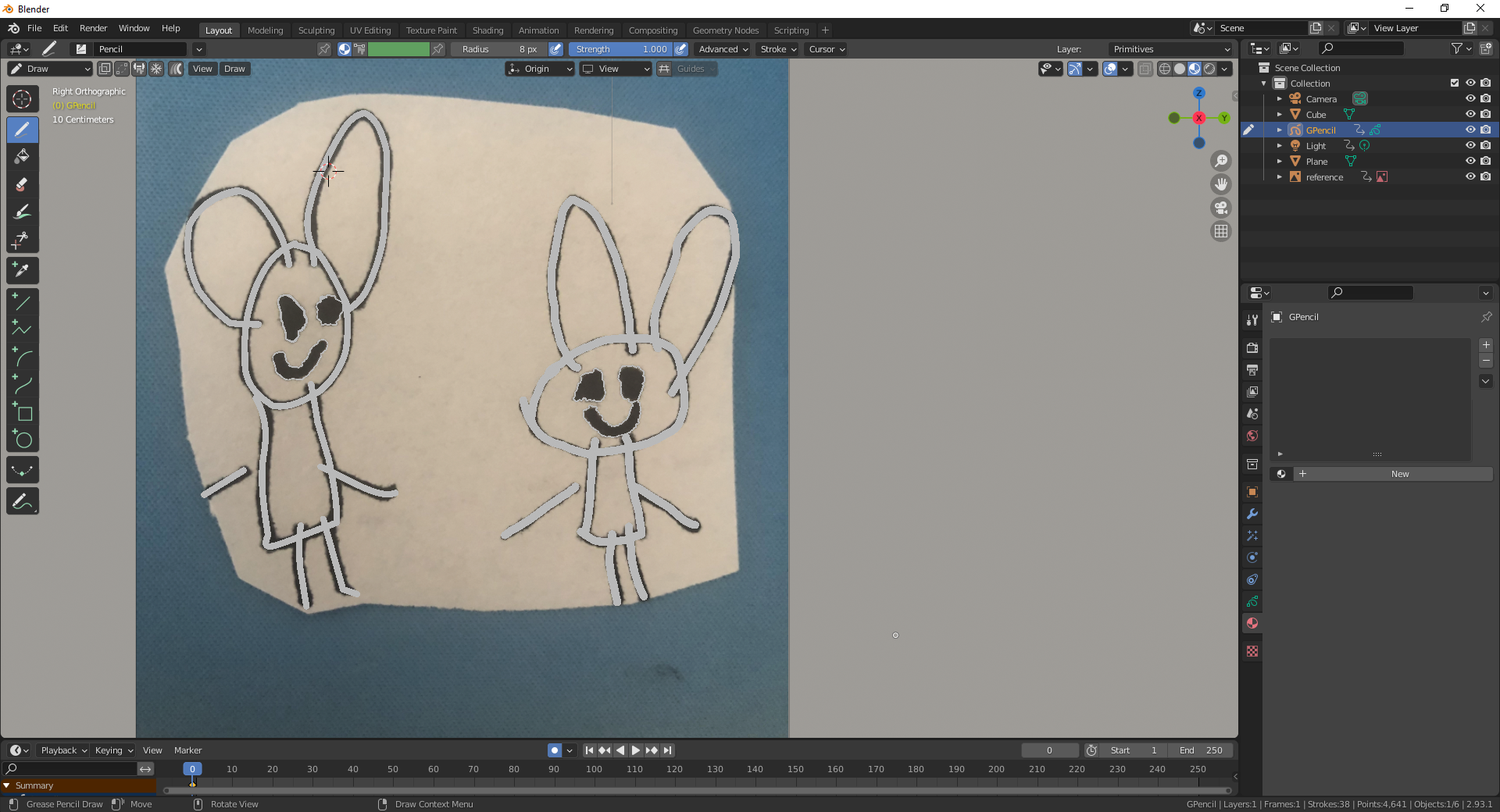 이후 Blank 선택 후 Edit 모드 들어가면 Grease Pencil 사용할 수 있다
