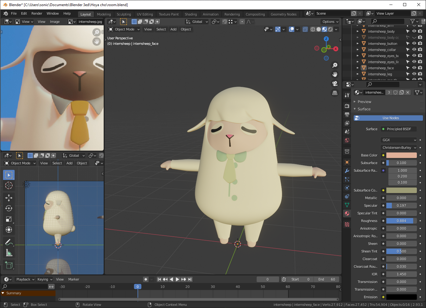 (메쉬를 통째로만들고 만두빚듯 주름 잡아서 머리카락 표현한게 신기함)