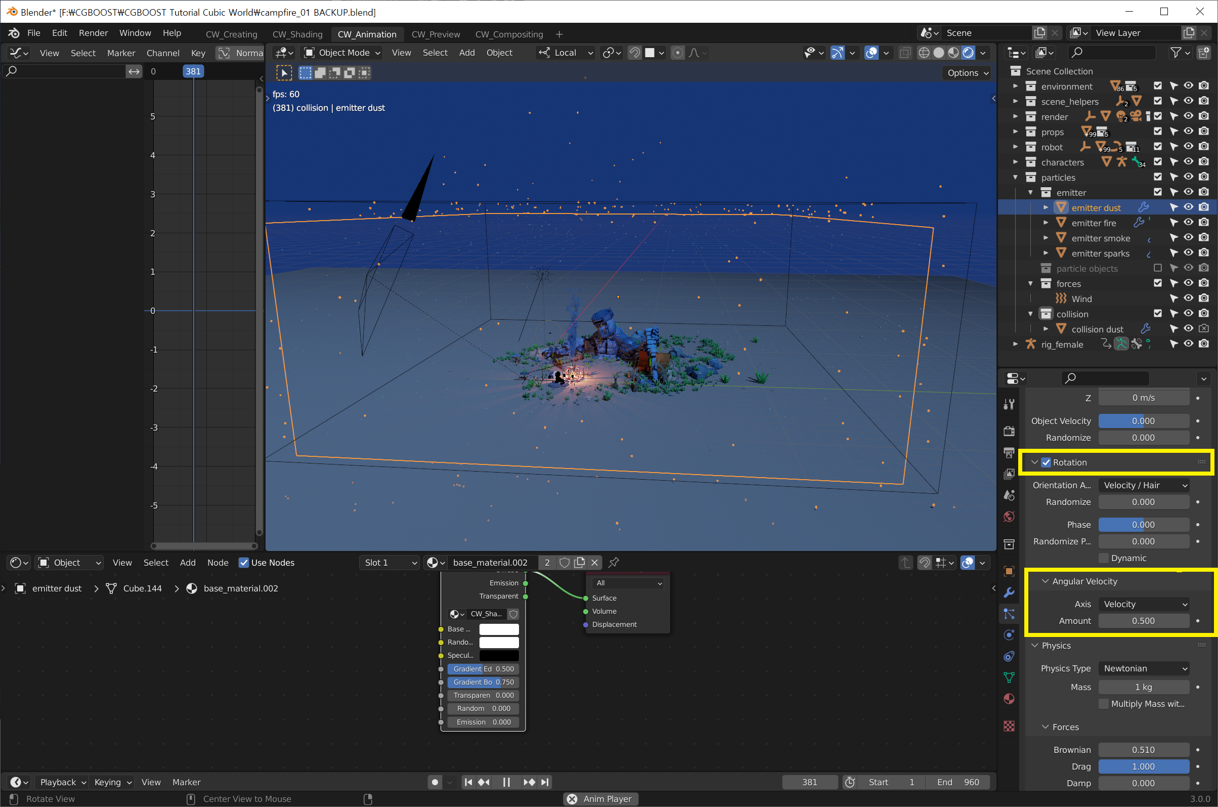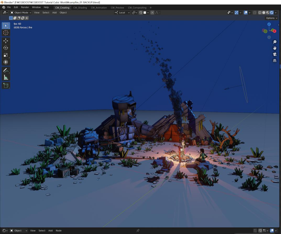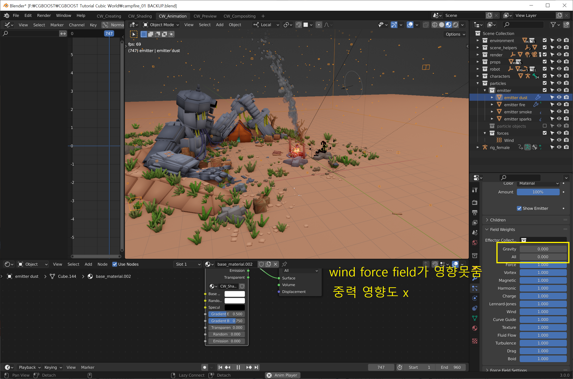 연기 올라가게 해놓고 wind 맞게 해주니까 살짝 꺾이는게 재밌고 귀여움