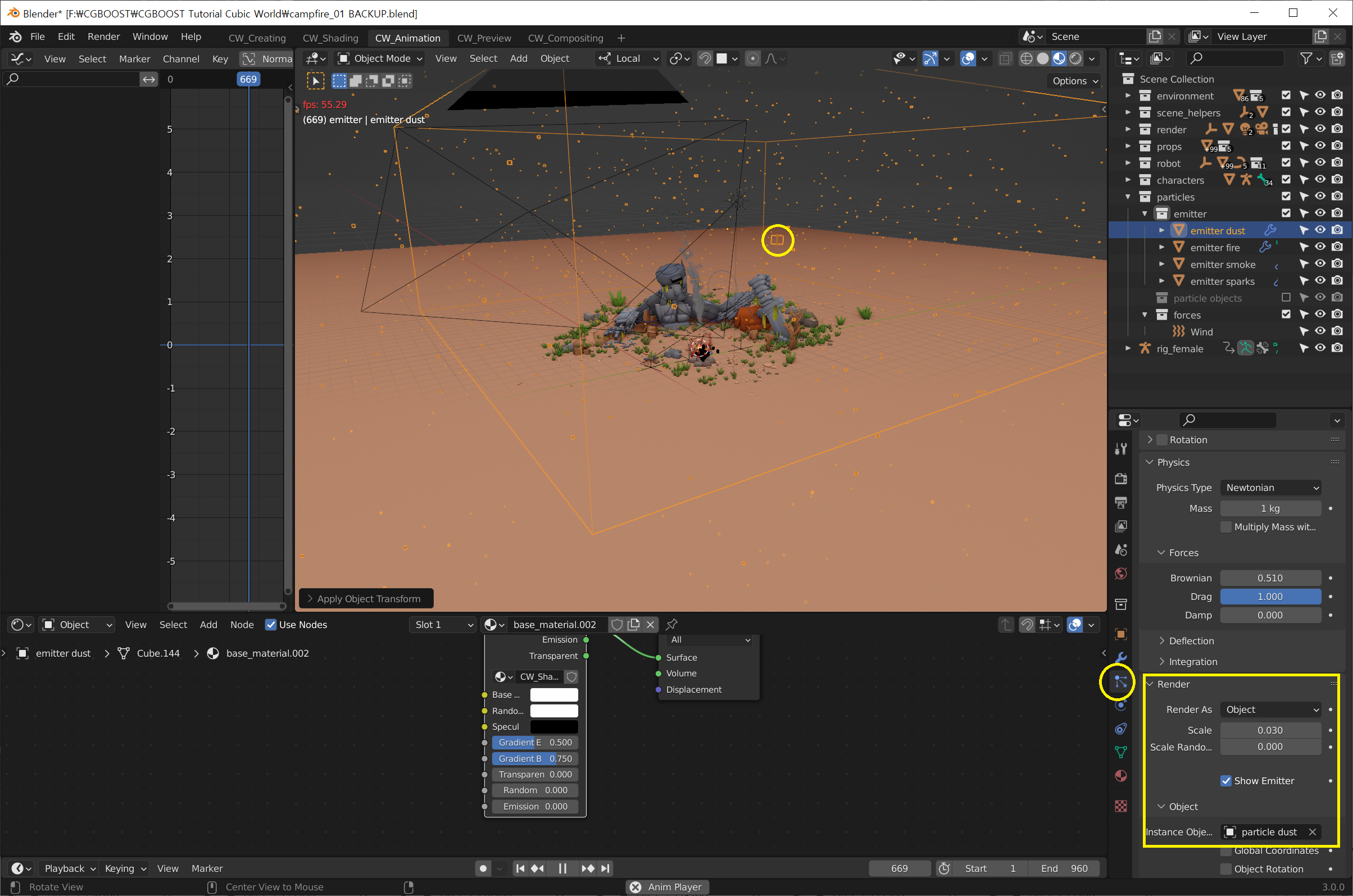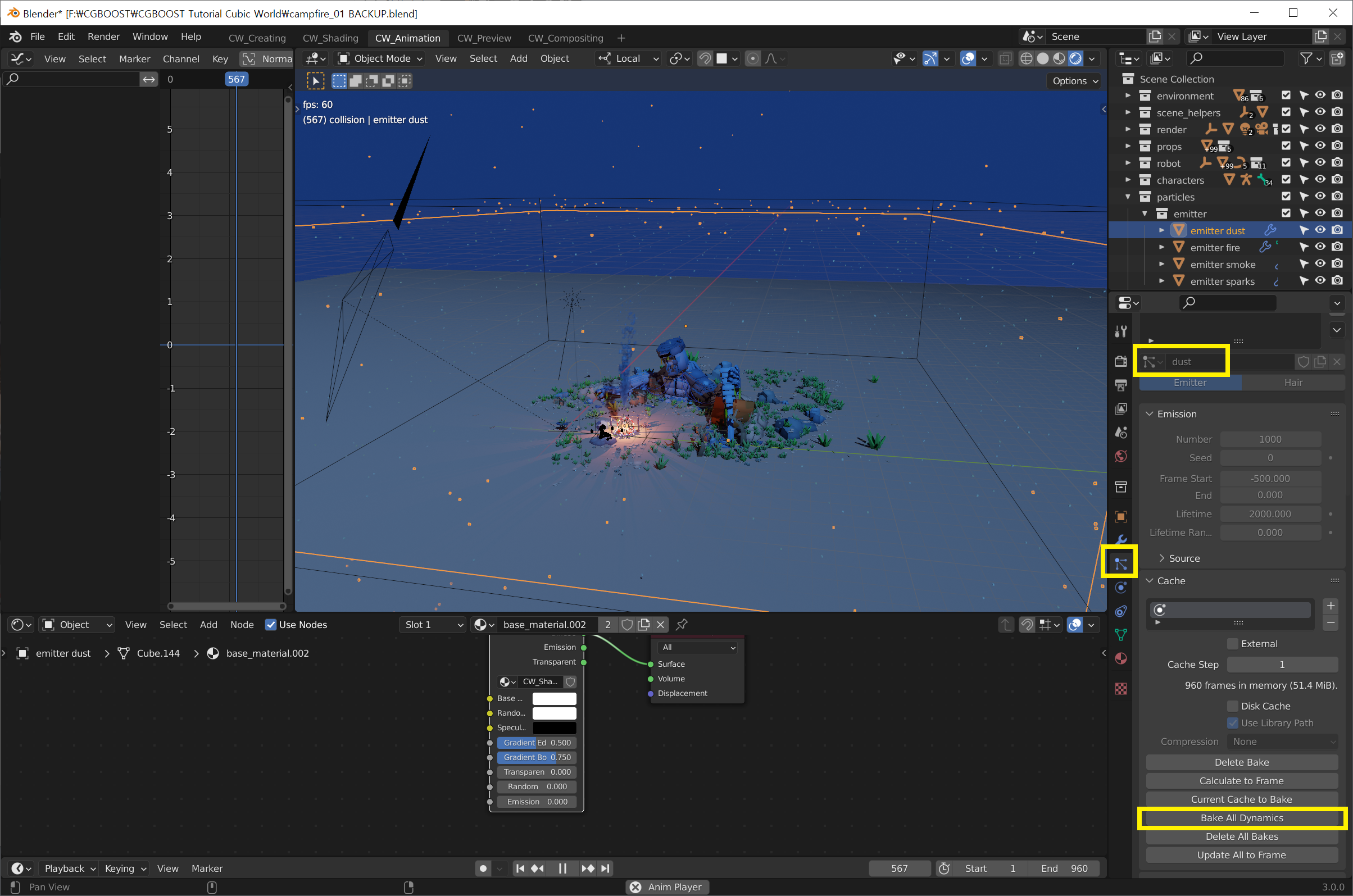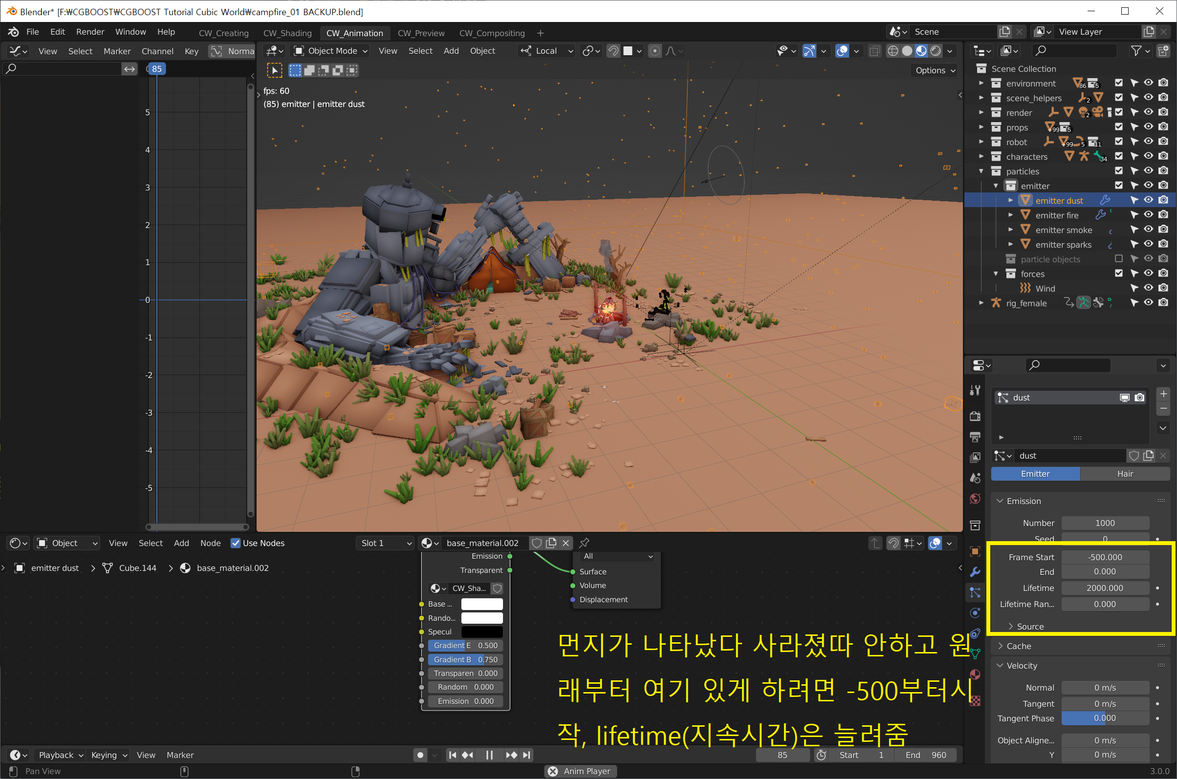 particle system에서 dust 오브젝트 만든걸로 object Render(Render As에서 Object로 바꿔줌) 했더니