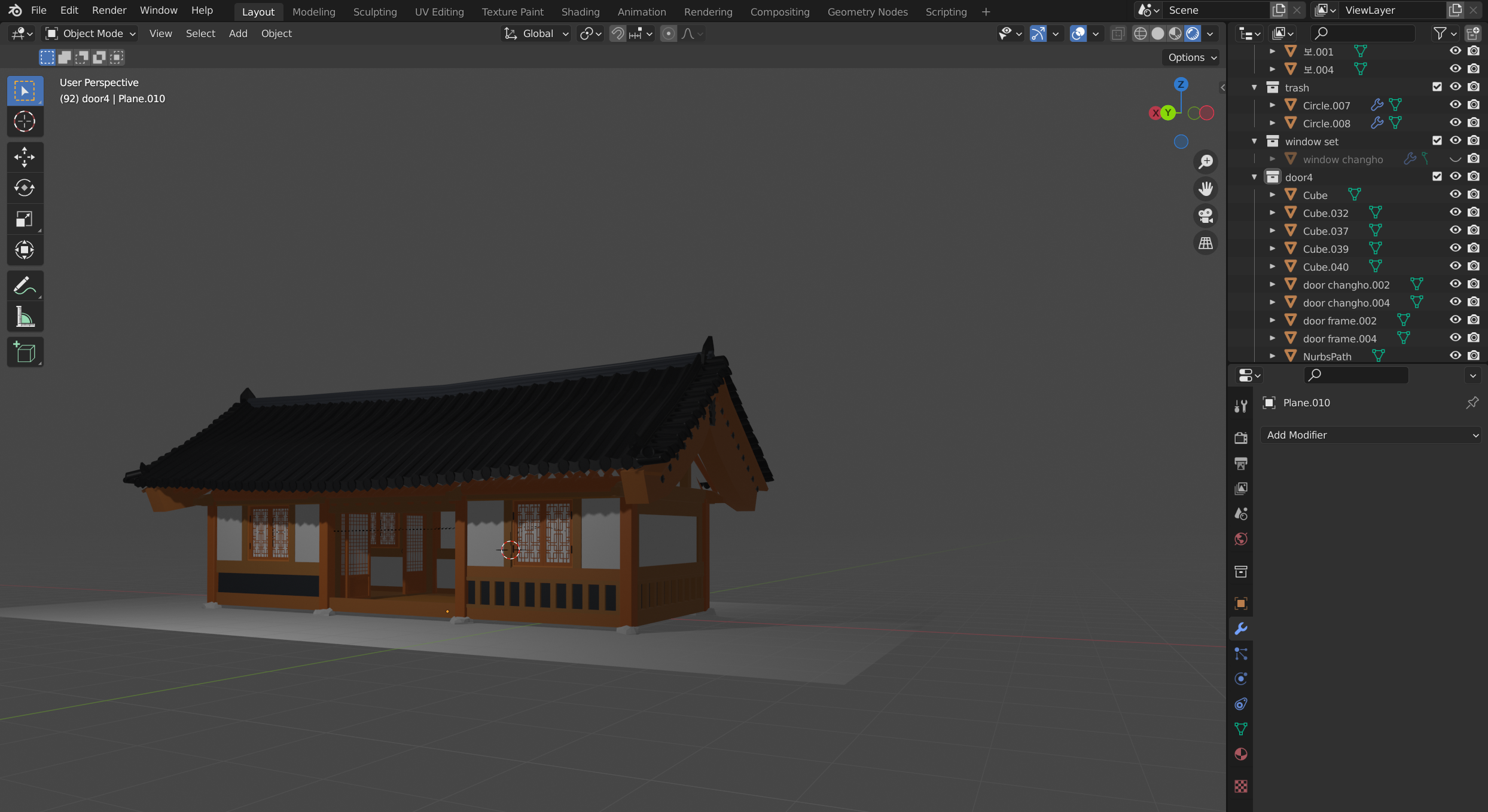 아직 미완성이지만 재미있게 작업중인 한옥 3d 모델링